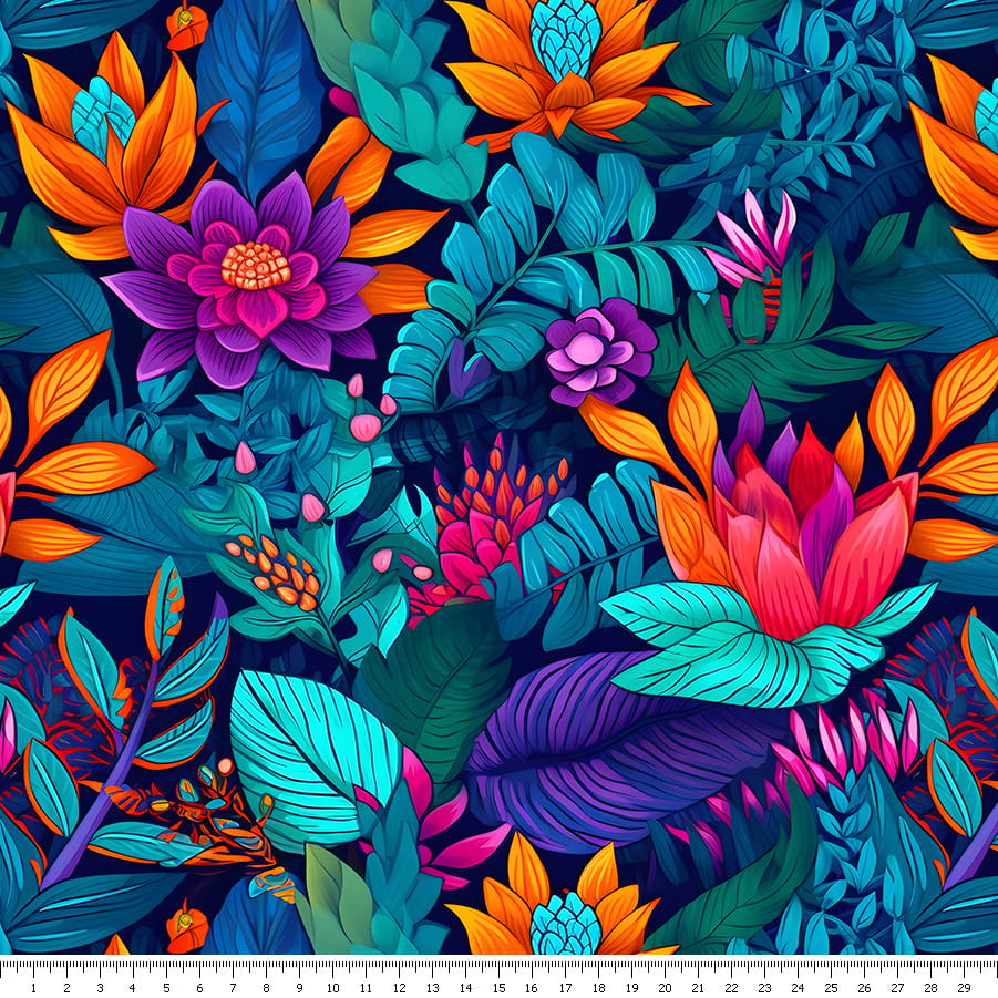 Dzianina jersey - tropikalny ogród to jersey typu singiel o gramaturze 210g/m².