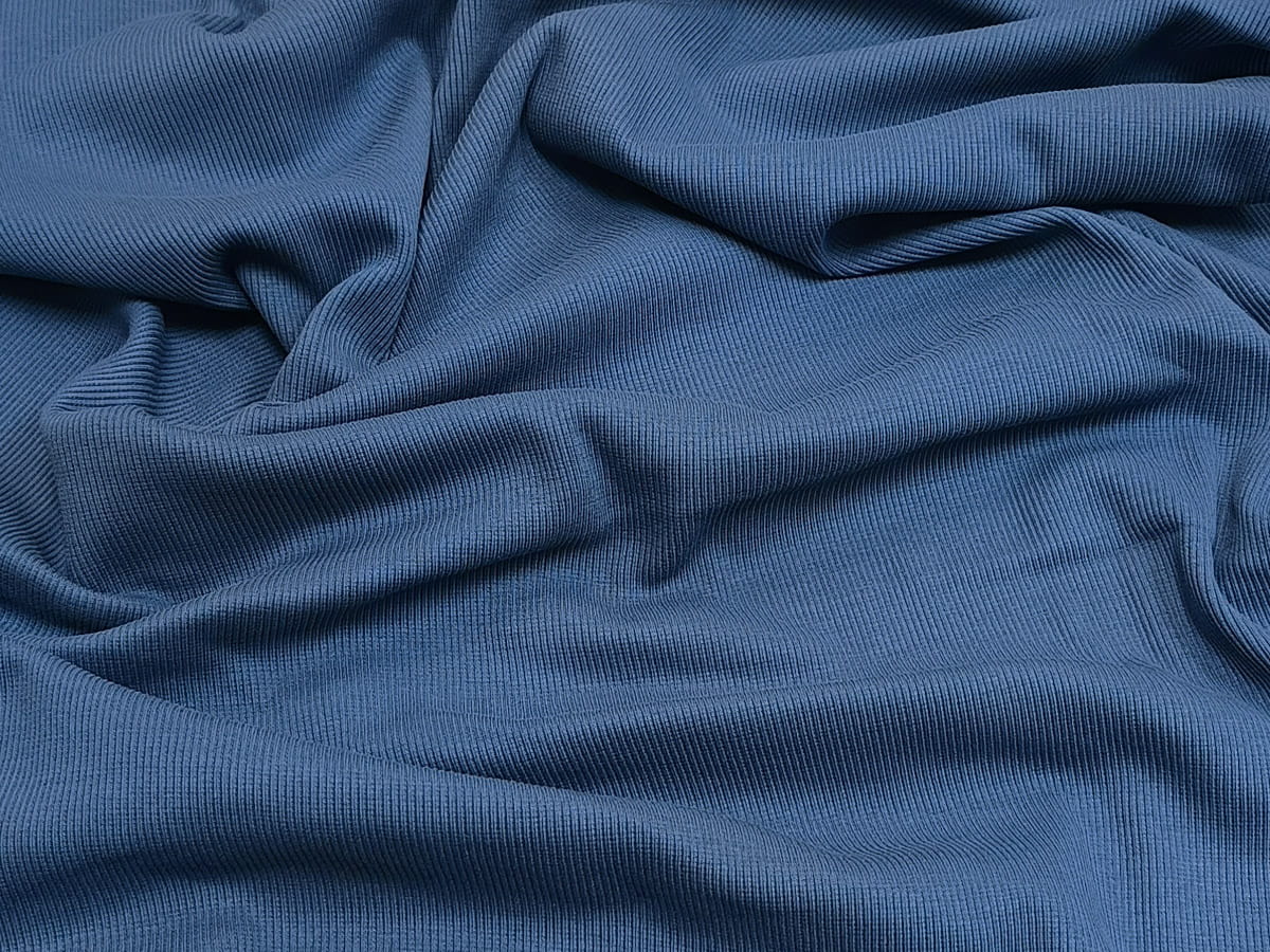Ściągacz prążkowany w kolorze jeans blue. Materiał doskonale sprawdzi się jako wykończenie dekoltu, rękawów czy pasa. Z powodzeniem można go również wykorzystać przy szyciu czapki, czy komina oraz wszędzie tam gdzie potrzebna jest mocna praca materiału.