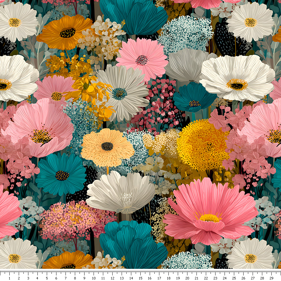 Welur tapicerski - Kompozycja letnich barw - kwiaty
