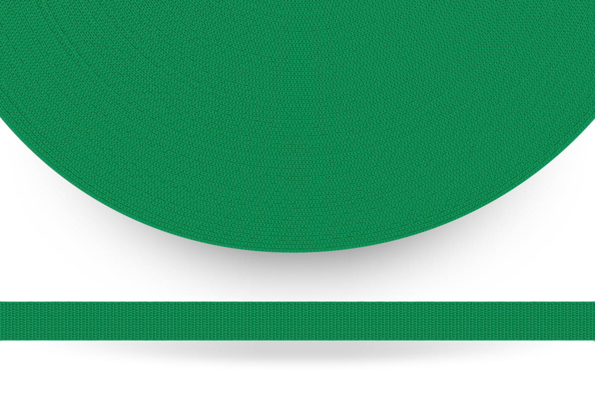 Wytrzymała taśma nośna poliestrowa o szerokości 25mm w kolorze zielonym.
